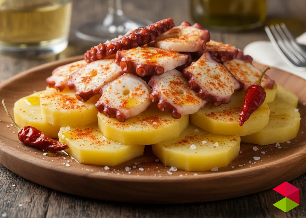 Su preparación resalta el sabor natural del pulpo, acompañado de patatas cocidas, un buen aceite de oliva y pimentón, creando un plato sencillo, aromático y muy sabroso.