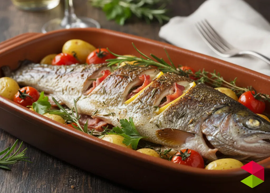 5 Hornea el pescado. Cocina durante 20–25 minutos, hasta que la trucha esté cocida pero jugosa.